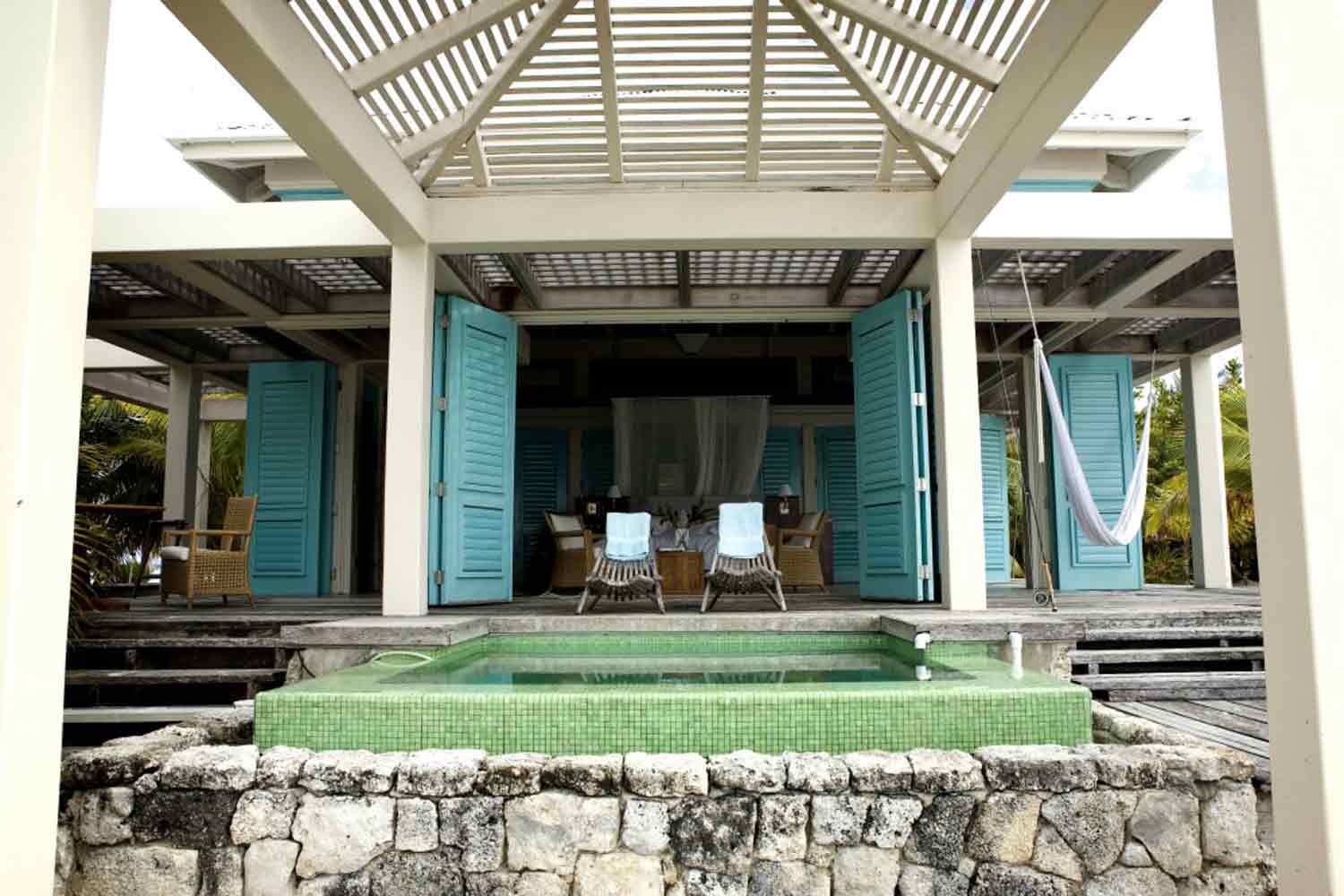 Seize the day in this majestic ocean front villa, complete with private dock, personal plunge pool. Bask in the royal treatment you deserve. Casa Manana’s king size bed and lavish Egyptian cotton sheets, positioned in the center of the villa, is surrounded by romantic mosquito netting and a 180 degree wrap-around view of the Caribbean. Other indulgent features include granite counter tops and exotic hardwood cabinets. One bedroom (1,500+ square feet).