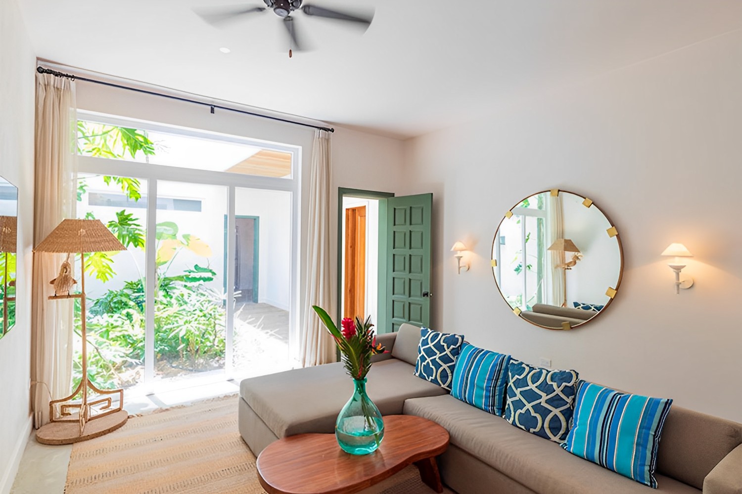 Experience an oasis of luxury in our Two Bedroom Beach Villa surrounded by the turquoise sea and white sand beach. Designed with modern decor, two bedrooms with en-suite bathrooms, and an open concept living and kitchen area, this beautiful beachfront villa is perfect for families and small groups. Relax in the plunge pool on your beachfront deck or escape to the atrium garden with an indoor pool. Discover pure Belize vacation luxury.