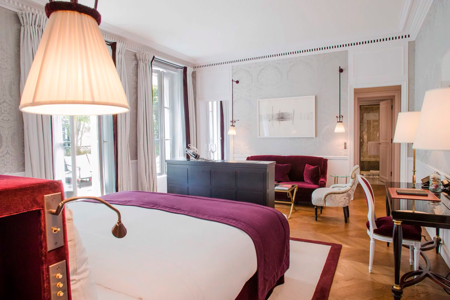 Each Junior Suite has its own charm, its own personality. Some overlook the Rue du Cirque, It is unique. Naturally, like the hotel’s other Junior Suites it features personalized decor and its antique furniture as well as its carefully sourced refined objects instill a unique atmosphere. It features ample volumes and a generous 50 m2 area offering a perfect combination of comfort and elegance. But this suite has more than that… The treasure that makes it really unique is its wonderful private terrace with a view of the French patio just below. The ultimate privilege in the middle of Paris! A secret place over-flowing with greenery, hidden from prying eyes thanks to carefully grown hedges. The perfect place to have breakfast in summer or enjoy the pleasure of a glass of champagne for two, comfortably settled in the armchairs overlooking the classic architecture of a magnificent Parisian inner courtyard. A room with a view? Even better than a suite, this is an irresistible invitation to experience truly authentic French romanticism. -Air conditioning -Nespresso coffee machine and tea facilities -Telephone -In-room minibar with mineral water, soft drinks and snacks -Satellite TV -Wifi -IPad in room -Safe -Hair dryer