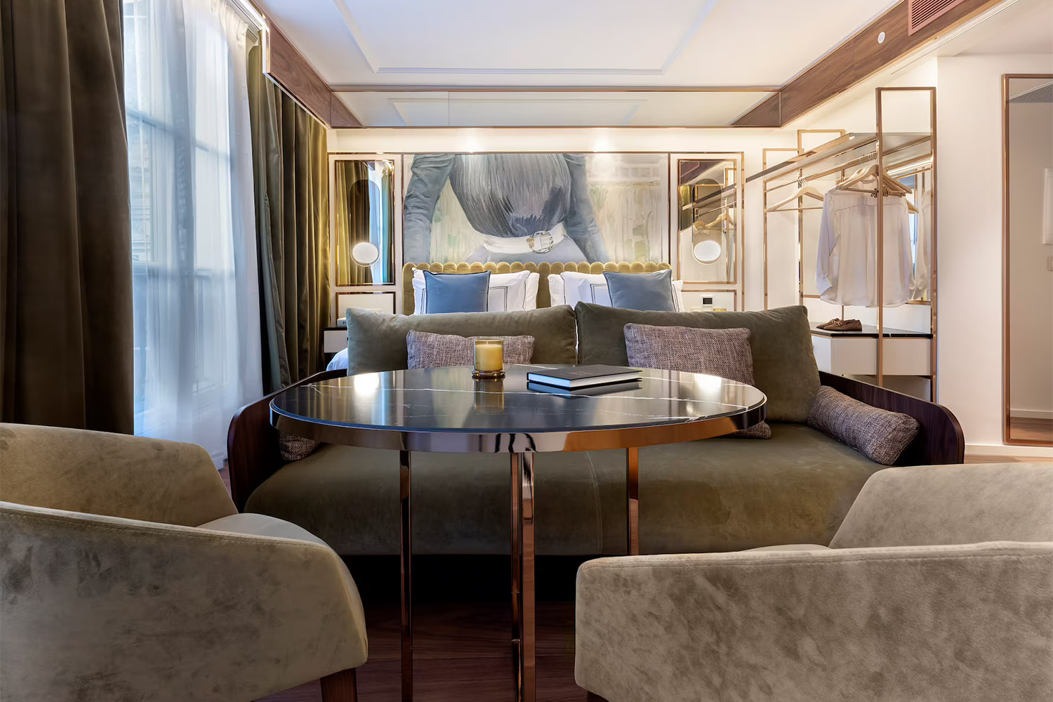 Discover the elegant aesthetics of Paris in every corner of this room, as well as more space and exceptional comfort. It includes a double bed, a sofa-bed and an espresso coffee maker. The bathroom provides a bathtub, bathrobe, slippers and luxurious amenities. STREET VIEW 1 KING BED OR TWO SINGLE BEDS 25 M² Rain shower Coffee maker and capsules DreamMaker mattress Bathrobe and slippers TV with Chromecast High-speed Wi-Fi