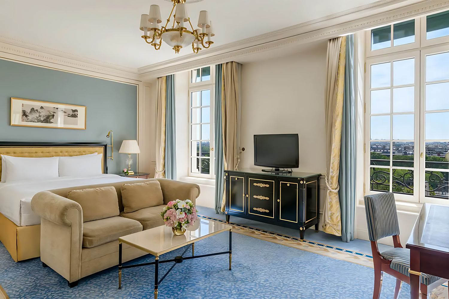 Iconic landmark views in a sophisticated setting Nothing says Paris quite like our Eiffel View Rooms, embodying the French art de vivre with subtle chinoiserie touches and featuring stunning views of the city's most recognizable landmark - the majestic Eiffel Tower. Features 45 sqm / 485 sqf Mesmerising views of the Eiffel Tower from airy French windows. Marble-clad bathroom with walk-in shower, separate deep-soaking bathtub, mirror-embedded television and heated floors. 1 king-size bed (or 2 twin beds upon request) that can sleep up to 2 guests. Bedside controls for lighting. Some rooms have the ability to connect to an adjacent room or suite. Amenities Bath & Personal Care Premium GUERLAIN toiletries Plush bathrobes and slippers Iron and ironing board Hairdryer Feather duvet and pillows Shangri-La signature bed featuring patented body-contouring technology