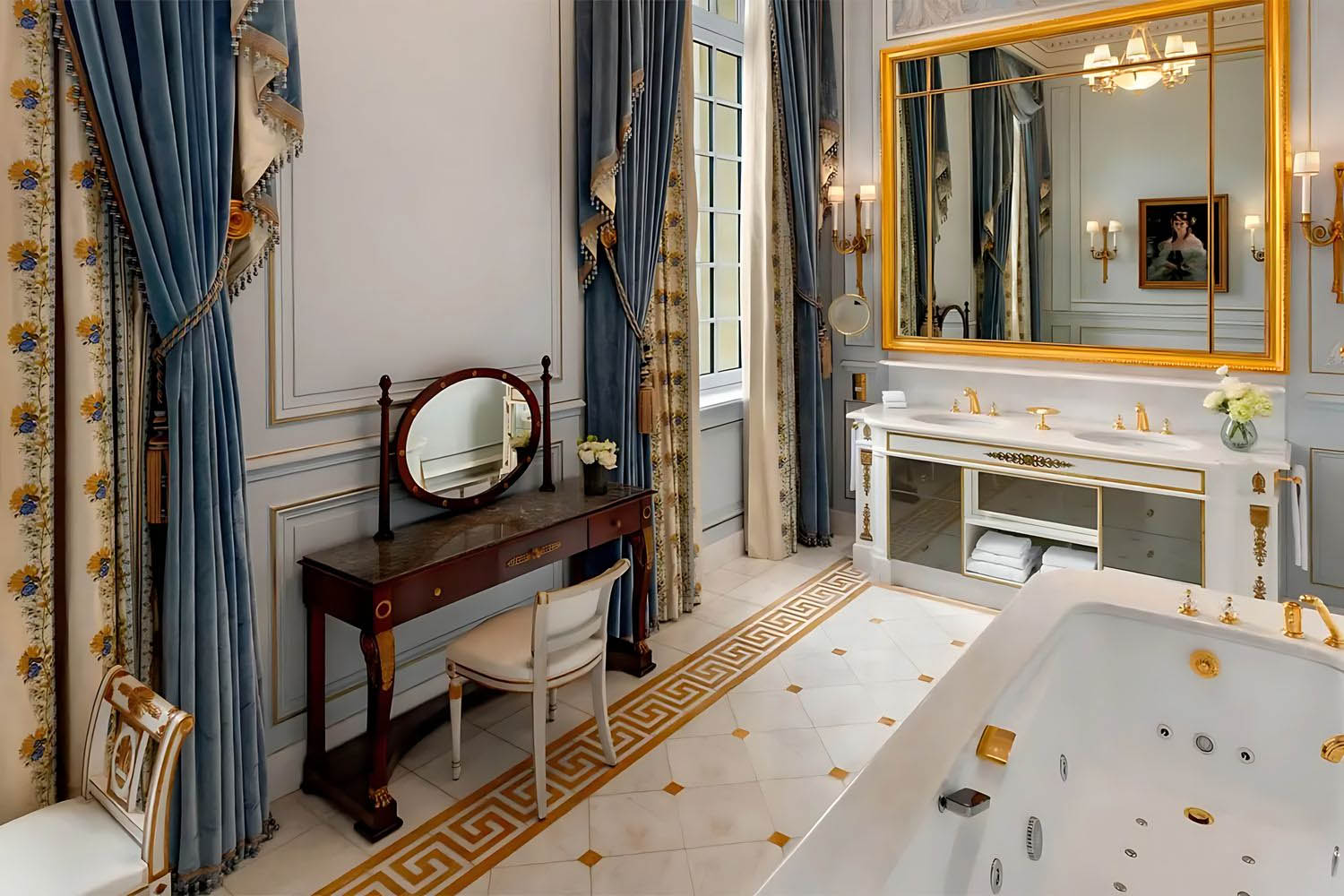 An imperial residence on the prestigious Avenue d’Iéna The extraordinary L'Appartement Prince Bonaparte, situated on the second floor, was originally the private residence of Prince Roland Bonaparte and holds Monument Historique status. A shining example of the Directoire style, this expansive one-bedroom suite has 5-metre-high ceilings with authentic crown mouldings and gilt work, Versailles-style parquet floors, period artwork and decor that seamlessly blends classic French late 18th century design with subtle Asian influences. Intimate balconies offer quaint views of Avenue d’Iéna and the Guimet Museum, while the abundantly spacious living room and separate dining area can comfortably seat up to 8 guests. The intricately designed bedroom is truly befitting of its former resident’s royal pedigree, bathed in varying shades of blue and gold with a large crystal chandelier at its centre, draped fabric headboard and velvet curtains framing floor-to-ceiling windows, tied back with handmade tassels. Features 315 sqm / 3,390 sqf Quaint views of Avenue d’Iéna and the Guimet Museum from intimate balconies. A French Monument Historique with beamed ceilings, crown moulding, gilt work and details inspired by authentic motifs from Prince Roland Bonaparte’s era. Abundantly spacious living room with guest washroom, a separate dining area that can comfortably seat up to 8 guests and a fully equipped butler’s kitchen. Private dressing area and walk-in closet in the master bedroom. 2 Bedroom Presidential Suite accommodating 1 king-size bed in each room. Luxurious marble-clad bathrooms fashioned in the Directoire style with dual washbasins, walk-in showers, separate whirlpool bathtubs, mirror-embedded televisions and heated floors. Option to connect to adjoining a room to create a 3-bedroom suite (twin beds upon request) total living space of 350 sqm / 3,770 sqf. Amenities Bath & Personal Care Premium GUERLAIN toiletries Plush bathrobes and slippers Iron and ironing board Hairdryer Feather duvet and pillows Shangri-La signature bed featuring patented body-contouring technology