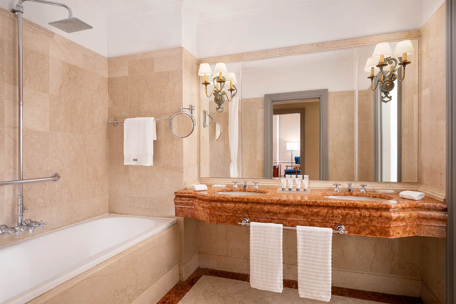 Deluxe Guest Room, 1 King, 20sqm/215sqft-25sqm/269sqft, Wireless internet, complimentary, Wired internet, complimentary Room Overview Deluxe Guest Room Beds and Bedding Maximum occupancy: 2 1 King Rollaway beds not permitted Cribs permitted: 1 Maximum cribs/rollaway beds permitted: 1 Pillowtop mattress, Featherbed, and Duvet Room Features 20sqm/215sqft-25sqm/269sqft Air-conditioned Allergy-free This room is non-smoking Connecting rooms are available (for some rooms) Windows may be opened Bath and Bathroom Features Marble bathroom Shower/tub combination Bidet Double vanities Hair dryer Robes: 2 Slippers