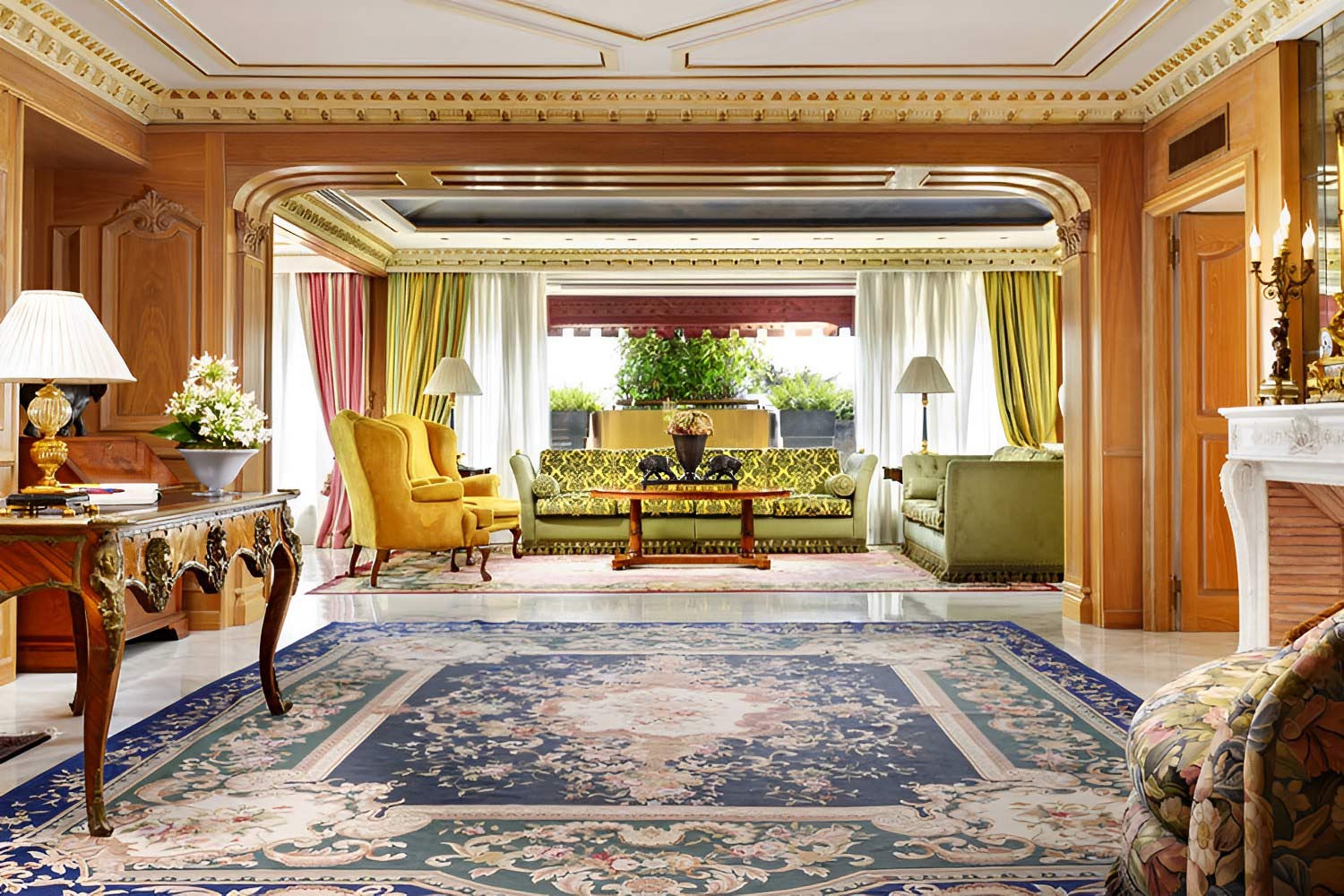 Located on the second to last floor of the hotel, our Royal Suite is an undisputed realm of luxury and sophistication, which is surrounded by a perimeter terrace offering a breathtaking from St. Peter's Dome to Villa Borghese. Measuring roughly 394 square meters (4240 sqf), this exclusive residence boasts a bright and elegant living room, a sumptuous dining area with a decorative fireplace and an Empire-style rectangular table which is able to accommodate up to 15 people. The apartment features a fully equipped kitchen and a second kitchenette as well as a private study. What guests will miss the most after their departure are the two bathrooms, one of which is fitted with Italian marble tiles, golden decorations, a giant bathtub and a spacious mosaic shower cabin with steam sauna. The main bedroom is an oasis of tranquillity with a luxurious double bed, a private balcony and a walk-in closet of approximately 20 square meters. Every detail, from sophisticated curtains to oriental carpets passing through decorated ceilings, creates a charming atmosphere that enchants the senses. For those who desire even more space, there is the opportunity to add one or more connecting rooms. Highlights Smart TV with Chromecast streaming device Free Wi-Fi Master-controlled climate control Illy coffee machine and tea making set Safe Villoresi toiletries Simmons Beautyrest Black® mattress