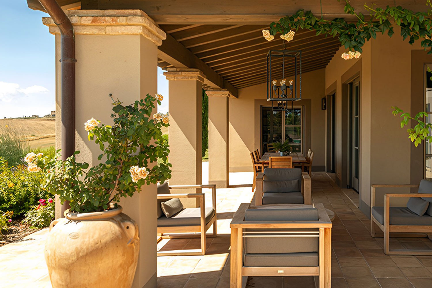 For those who love to explore new places, this area of Tuscany offers endless possibilities: medieval towns perched on hills, some of the most famous vineyards of Europe, cities famous for their art and charming landscapes. Pisa, Florence and Siena can be reached in less than an hour and only a few minutes drive is also the enchanting Borgo of Castelfalfi with its boutiques and fine dining. The wrought iron gate is located a few meters beyond a slight turn of the path that, bordered by olive trees and lavender plants, continues up to the pavement that leads to the entrance door. After parking the car in a practical and spacious garage, we enter the villa: a few steps and we are in the main hall where we discover a wall in natural stone, furnishings and finishes in pastel colored wood and a typical Tuscan terracotta flooring. The whole family can gather around the large dining table, then move in front of the fireplace in winter or out in the cool under the pergola in summer. The kids, but not only them, might have fun in the multimedia room adjacent to the lounge area, equipped with a large flat screen ideal for movies and cartoons, or they might play around the pool while the parents, lying comfortably on the loungers, relax in the sun. From the large living room, next to the fireplace, we enter a corridor leading to the sleeping area, consisting of two double bedrooms with en-suite bathroom, a twin bedroom designed for children and another double bedroom with view, to the west towards the pool and to the south towards the green of hole no. 3. Each room offers direct access to the garden and the pool through large French windows, beyond which there is a covered loggia and two pergolas furnished with wicker lounges and bamboo; ideal environment to enjoy magnificent summer sunsets and long dinners with the whole family, surrounded by the enchanting panorama of the Tuscan hills. Services included -Wi-Fi high speed -Air conditioning room-controlled -Daily Maid service -Welcome grocery shop rifornita ogni giorno -15% discount for green fee and tennis