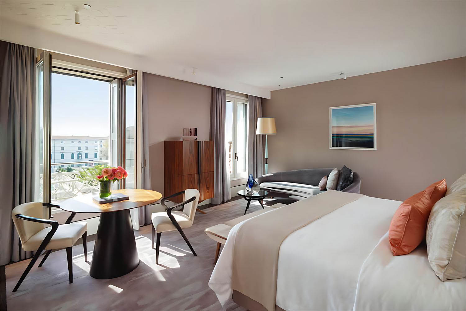 Gand Canal View, 1 King, Mini fridge, 35sqm/377sqft, Wireless internet, complimentary Room Overview Gand Canal View Beds and Bedding Maximum occupancy: 2 1 King Rollaway beds not permitted Cribs not permitted Pillowtop mattress, Duvet, and Frette luxury linens Room Features 35sqm/377sqft Air-conditioned Connecting rooms are not available Bath and Bathroom Features Marble bathroom Lighted makeup mirror Hair dryer Robe Slippers