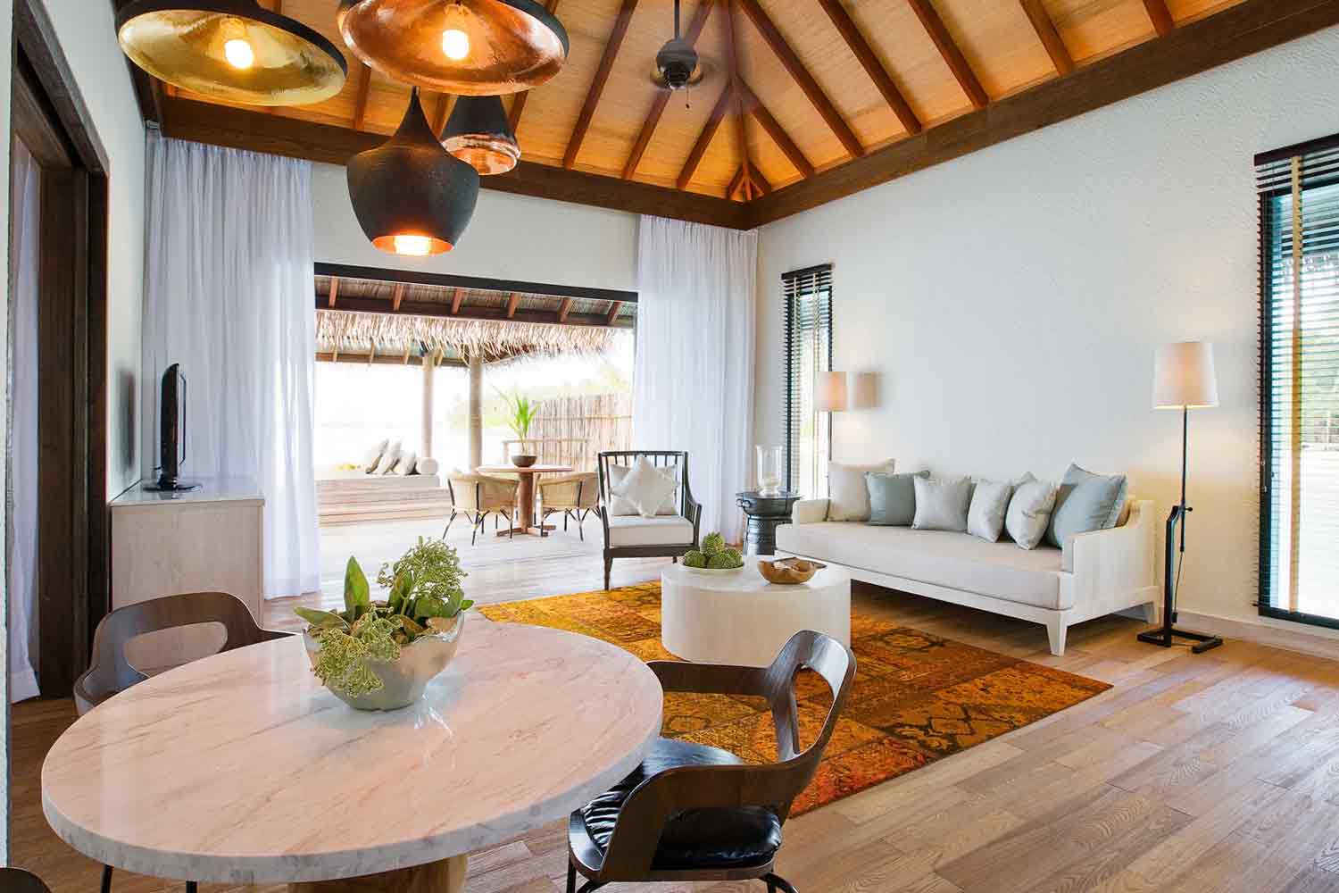 Beach Villas sit to the west of the island, with direct beach access and sundecks to lounge on in the glow of each Maldivian sunset. These villas are our largest one-bedroom accommodation with ample dining and living areas, for families that enjoy enhanced privacy and the luxury of extra space. Beach Villa living is a unique mix of privacy and openness: French doors connect the bedroom to the poolside and the bathroom blends into the outdoors.